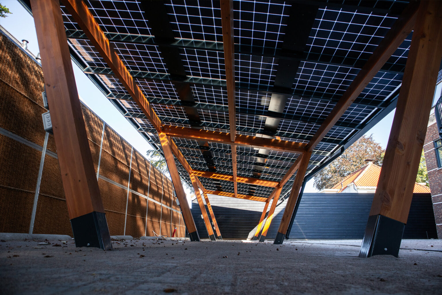 De solar carport is het meest zichtbare onderdeel. Zonnepanelen boven parkeerplaatsen, auto’s in de schaduw, energie opgewekt op eigen terrein. Maar daarachter zit een compleet systeem: opwek via zon, opslag in batterijen en slimme sturing via een EMS (energy management system).
